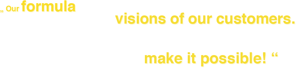 The intensive research of our specialists is a valuable basis for the conjoint development of your visions and innovations. Our long-standing know-how in the fields of dosing- and mixing technologies, individual formulation development as well as an optimized adjustment of machine and raw materials allows a successful turnout.